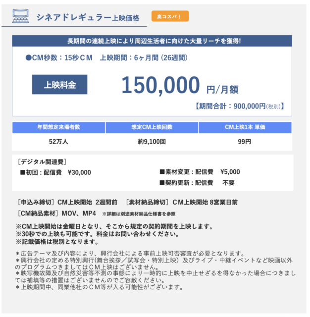 シネアドのレギュラープラン(6ヶ月契約)です
