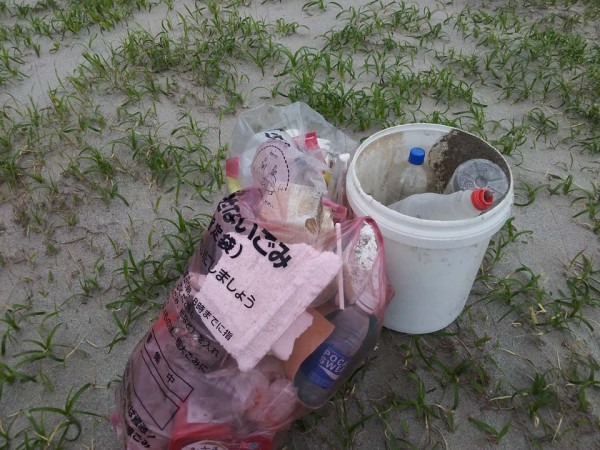 最近は韓国からのゴミも流れ着くようでハングル文字の書かれたゴミも