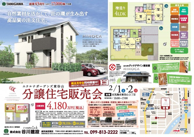 谷川建設様「分譲住宅販売会見学会」のB4チラシを制作いたしました。