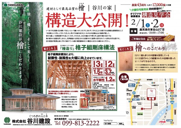 裏面は住宅販売会のすぐ隣で開催される「構造見学会」の案内となっています。
